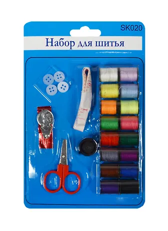 Набор швейный (SK020) (7700186) (нитки/16цв.+ножницы+пуговицы/4шт+нитковдеватель+иглы/3шт+лента/60см/1шт+наперсток) (блистер)