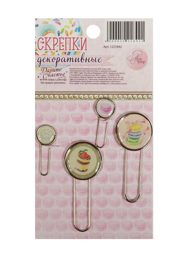 Набор скрепок для скрапбукинга Сладкие грезы (1221842) (4шт.) (Арт Узор) (3+) (упаковка)