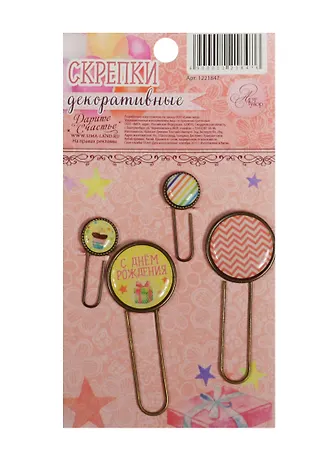 Набор скрепок для скрапбукинга Яркое настроение (1221847) (4шт.) (Арт Узор) (3+) (упаковка)
