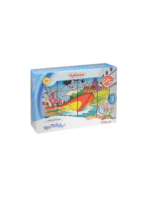 Из двенадцати кубиков собираются несколько эпизодов из культового мультфильма "Ну, Погоди", и все картинки очень четко изображены, забавные) Сын каждое утро задает вопрос "А где же мои кубики?",– берет их и начинает ворошить, перемешивать, а затем собирать картинки. Я не думала, что такая простая вещь так обрадует ребенка (ему исполнилось 4 года). Очень рекомендую!