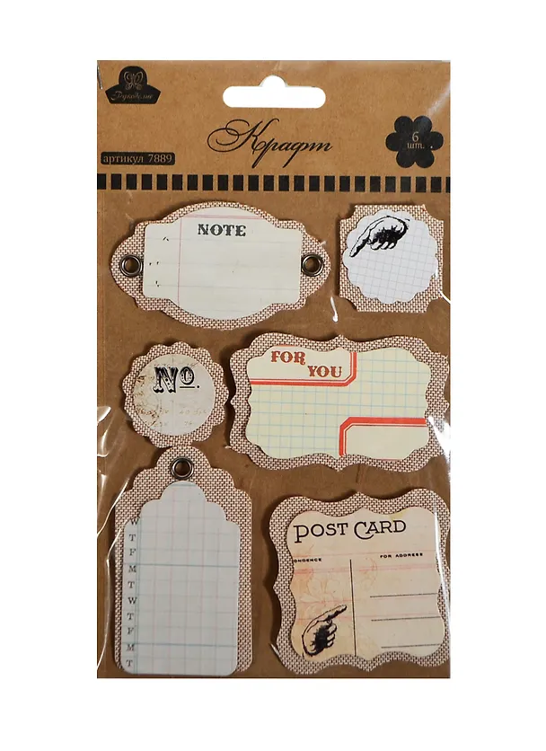 Набор стикеров Крафт (7889) (6шт) (ткань+бумага) (Рукоделие) (упаковка)
