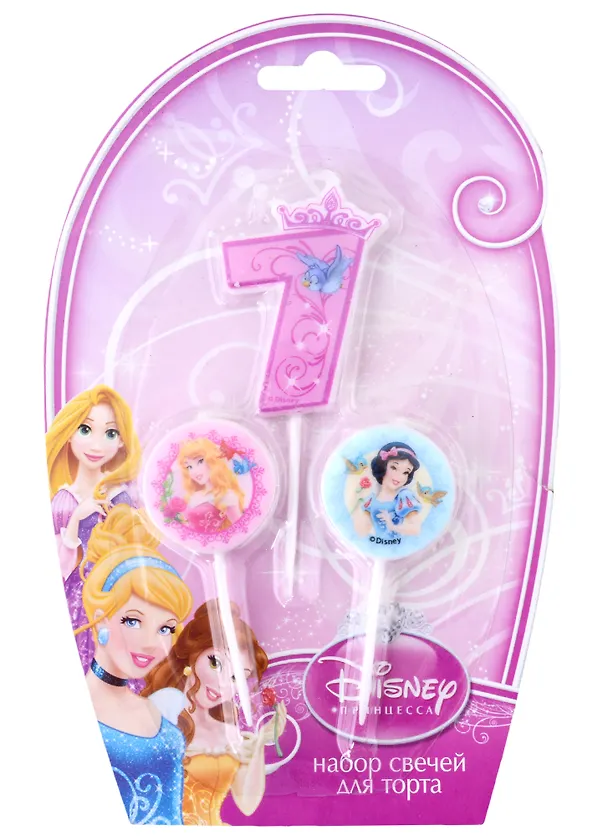 Набор свечей для торта цифра 7 Дисней Принцессы (3 шт) (7 см)