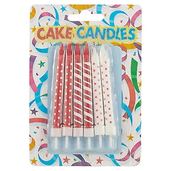 Набор свечей для торта Полоски и Точки (красные) (6шт) (8см)