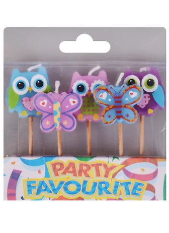 Набор свечей для торта Совы и Бабочки (5шт)