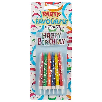 Свечи со звёздочками украсят торт или пирожные, а блестящая праздничная табличка добавит блеска вашему торжеству и порадуют именинника.