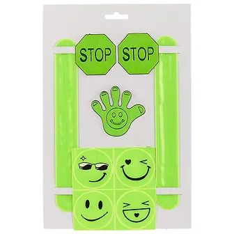 Украсьте рюкзак или одежду своего ребёнка забавными светоотражающими рожицами, браслетами и другими наклейками. Они ярко выглядят и будут заметны в тёмное время суток.