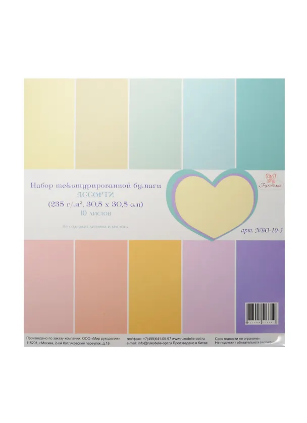 Набор текстурированной бумаги Рукоделие (NBO-10-3) (10л.) (ассорти) (235 г/м2) (30,5х30,5см) (упаковка)