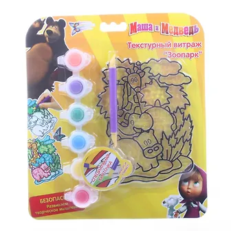 Набор Текстурный витраж Зоопарк (15540) (758648) (+6 красок по 2,3мл+кисть) (Маша и Медведь) (блистер)