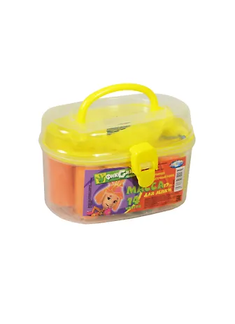 Набор теста ФИКСИКИ в сундуке для лепки 14 цветов Х 17 гр. (тесто на основе крахмала) дополнительные элементы (ролик для раскатывания, пластиковые формы).