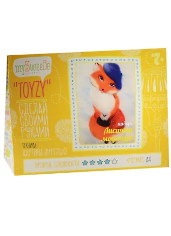 Набор Toyzy Лисичка-модница (TZ-P030) (А4) (Техника Картина шерстью) (7+) (MySweeBe) (Hand made) (Сделай своими руками)