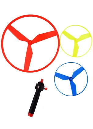 Набор из трёх колец-вертушек с запуском представлен в ассортименте, в нескольких цветовых вариантах. Принцип игры достаточно прост. Нужно установить вертушку на пусковое устройство, а затем быстро вытянуть шнурок, и кольцо взлетит!