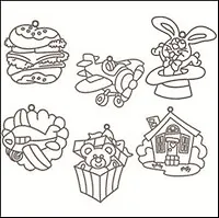 Набор: сэндвич, самолетик , кролик, мишка, вертолётик, домик.