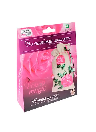 В серии "Волшебный мешочек" сочетаются такие техники рукоделия как работа с лентами, вышивка лентами и шитье.
