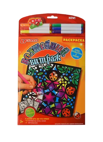 Набор Волшебный витраж Раскраска (CB-02) (12 полупрозр. листов с узорами+6 супер-фломастеров) (3+)