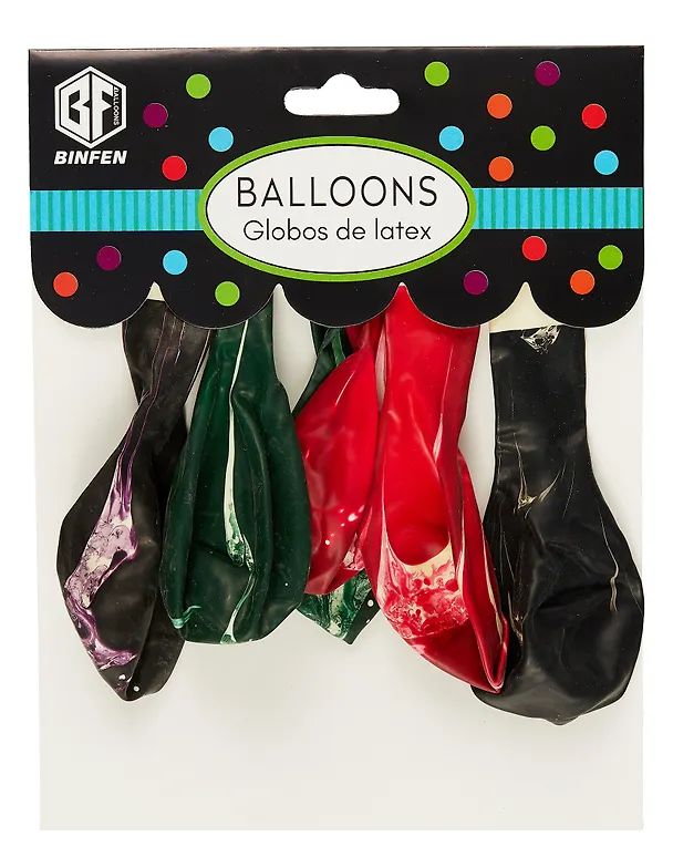 Неплохой набор шаров для праздника. Они имитируют мрамор и выглядят очень необычно и стильно. Шарики тёмные, выполнены из плотной резины, при использовании ни один из шаров не лопнул. Размер средний, не очень большие, но вместе выглядят достаточно симпатично. Рисунок на них нанесён качественно, не осыпается при использовании. Цена неплохая, но слегка завышена. В целом рекомендую. Отличный товар