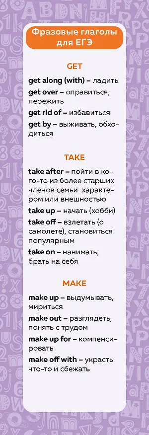 Подготовка к ЕГЭ по английскому языку! Наш набор стильных закладок-шпаргалок станет вашим незаменимым помощником! В нем собрана самая полезная информация для эффективной подготовки к экзамену. В набор включены актуальные темы, грамматические правила, примеры, перечень исключений и полезные советы, разработанные специально для одиннадцатиклассников. Автор-составитель — опытный преподаватель и репетитор ОГЭ и ЕГЭ по английскому языку.