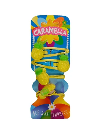 Набор заколок Ананас (21853) (2 резинки+2 заколки) (желт.) (Caramella) (упаковка)