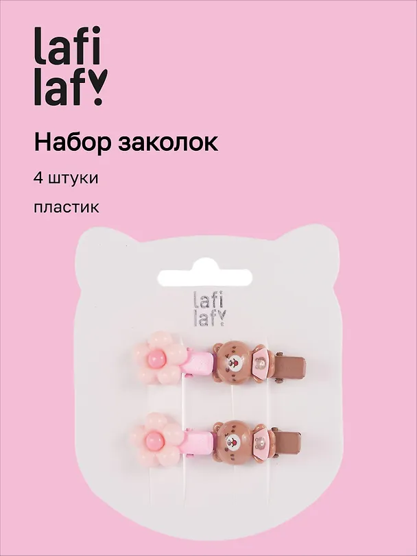 Набор заколок Мишки и цветочки перламутровые (4шт) (пластик) (2,5см) (12-03907-B3) (Lafilaf)