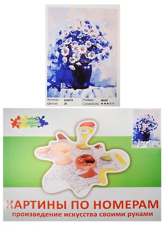 Набор Живопись на холсте Васильки и ромашки в синей вазе (GX8779) (40х50см) (краски/26цв.) (Цветной мир ярких идей) (7+) (коробка)
