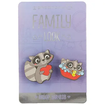 Ни один стиляга не будет выглядеть современно без искусно подобранных украшений, которые завершат его образ! Бижутерия — это современная недорогая альтернатива изделиям из золота и прочих драгоценных металлов. Набор значков для мамы и ребёнка "Еноты" — это то, что добавит вам шарма!