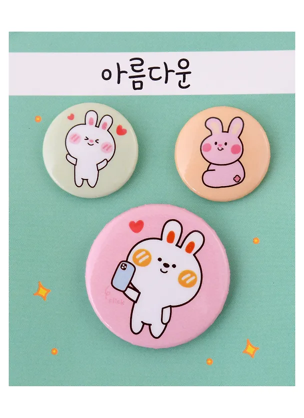 Очень здорово, что у значков разный размер, это выглядит безумно стильно. Пастельные цвета подойдут к очень многим образам, а маленькие кролики добавят милоты. Так же хочу отметить в плюсах это цену за значки, меньше 200р за такую красоту!