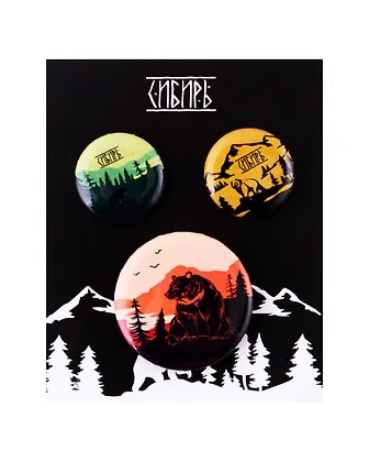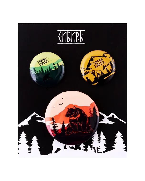 Набор значков Сибирь Медведи (металл) (2 шт 25мм, 1 шт 38мм) (ЗН2023-068)