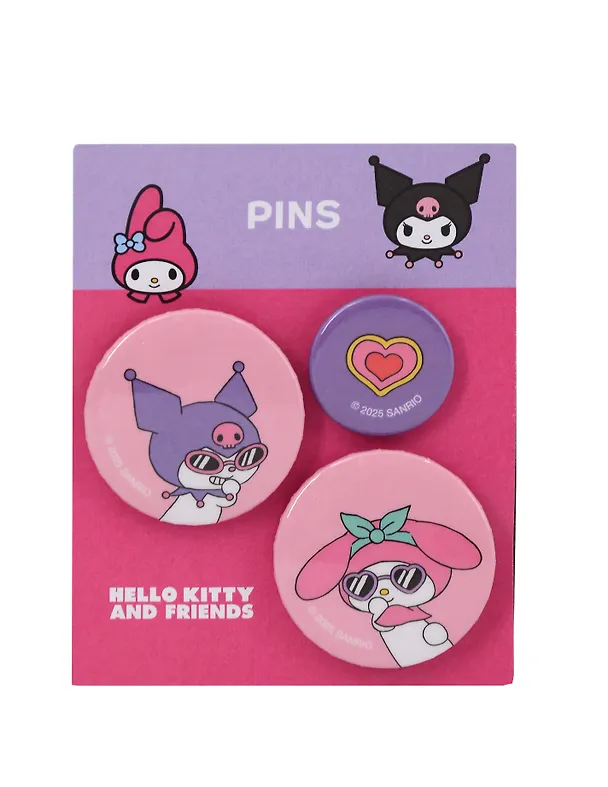 Набор значков Sanrio Мордашки в очках (металл) (1 шт 25 мм, 2 шт 38 мм)