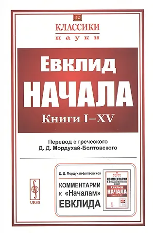 Представленный в данном издании перевод «Начал» с греческого выполнен знаменитым отечественным математиком, историком науки, методистом и педагогом Д. Д. Мордухай-Болтовским (1876-1952) и считается многими исследователями наиболее точным из существующих переводов на русский язык. Это последнее по времени полное академическое издание труда Евклида, снабженное подробными комментариями переводчика. Помимо 13 книг «Начал», бесспорно написанных Евклидом, оно содержит 2 книги (XIV и XV), написанные другими авторами, но авторство которых до XVI в. приписывалось Евклиду.