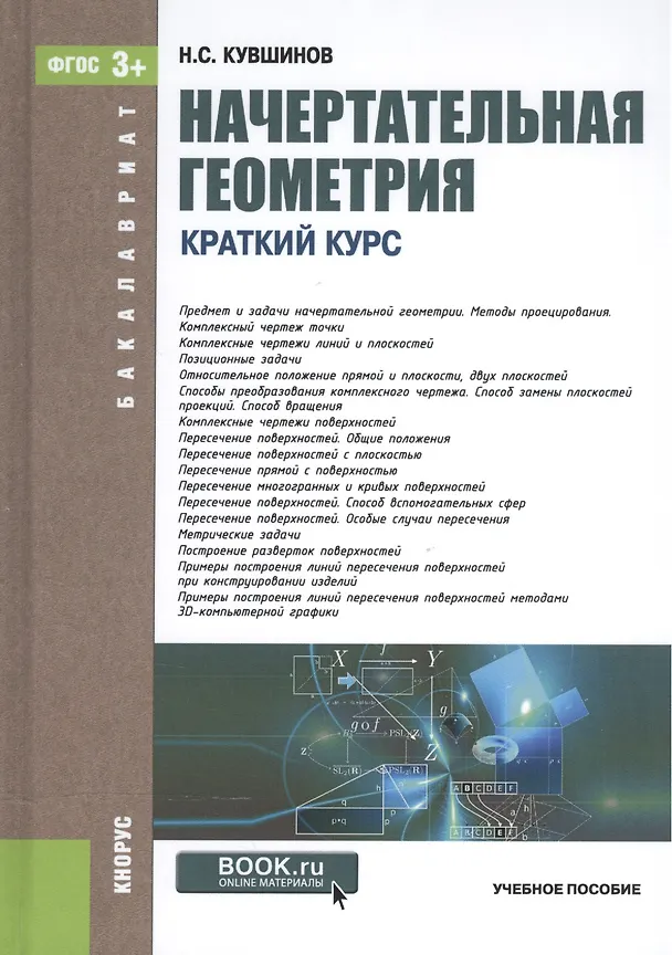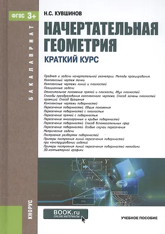 Представлены теоретические положения по основным темам учебной дисциплины "Начертательная геометрия", дополненные многочисленными примерами решения задач. В отличие от известных учебников и учебных пособий материал предельно сжат и весь скомпонован из отдельных рисунков. Каждый рисунок выполнен в форме мини опорного конспекта с необходимыми текстовыми пояснениями. Для большинства задач приведены анализ, схема, алгоритм и последовательность их решения в символьной форме. Показана последовательность решения и оформления задач методами 3D-компьютерной графики на основе пакета AutoCAD. Приведены вопросы для самоконтроля и список литературы. Соответствует ФГОС ВО 3+. Предназначено для самостоятел