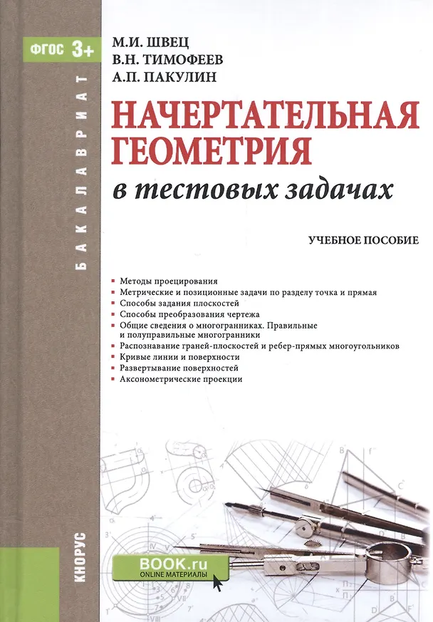 Разработано в соответствии с учебно-методическим комплексом полного курса дисциплины "Начертательная геометрия" и содержит наряду с теоретической частью курса более 1100 тестовых задач для самоподготовки студентов технических специальностей в рамках программы компьютерного тестирования.Способствует закреплению знаний основных положений, понятий и правил при решении задач начертательной геометрии. Соответствует ФГОС ВО (СПО) 3+. Для студентов бакалавриата технических направлений, преподавательского состава вузов при составлении программ тестирования знаний студентов для экспресс опросов на практических занятиях, а также промежуточной аттестации.