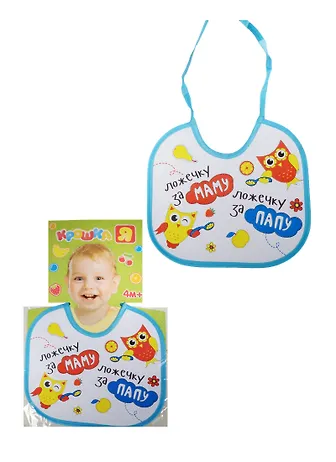 Нагрудник Ложечку за маму ложечку за папу из клеенки на завязках (1248378) (Крошка Я) (4+) (упаковка)