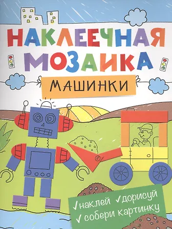 Прояви свою фантазию! А помогут тебе в этом яркие наклейки разнообразных геометрических форм и обычный карандаш или фломастер. Внимательно изучи инструкцию с левой стороны и приступай к созданию своего шедевра на правой страничке. Сложил квадратики и треугольнички? Теперь дорисуй своему созданию любые детали, какие тебе хочется.