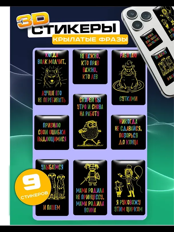 Преобразите свой телефон с нашими стильными 3D стикерами-наклейками, выполненными в элегантном черном цвете! Эти уникальные наклейки не только придадут вашему устройству особый шарм, но и станут отражением вашего внутреннего мира и настроения. Каждая наклейка содержит вдохновляющие фразы, которые поднимут вам настроение и напомнят о важности позитивного мышления. 3D стикеры, наклейки на телефон, черный цвет, стильные аксессуары, вдохновение, самовыражение, уникальный дизайн, позитивные фразы. Наши 3D стикеры идеально подходят для украшения не только мобильных телефонов, но и других гаджетов — планшетов, ноутбуков и даже ежедневников. Они легко наклеиваются и снимаются, не оставляя следов, что позволяет вам менять стиль в любое время. Высококачественные материалы гарантируют долговечность и сохранение яркости цветов, а также защиту от износа. Каждый набор включает разнообразные фразы, которые вдохновят вас на новые достижения и помогут выразить ваши мысли. Стикеры содержат мотивационные цитаты, афоризмы и просто добрые слова, которые будут радовать вас каждый день. Эти наклейки — отличный способ добавить нотку креативности в повседневную жизнь и сделать ваш телефон поистине уникальным. Черный цвет придает стикерам элегантность и универсальность, позволяя им сочетаться с любым стилем. Наклейки просто наклеиваются и легко удаляются без повреждений. Изготовлены из прочных материалов, устойчивых к износу и механическим повреждениям. Прекрасный вариант для друзей и близких, которые ценят оригинальные аксессуары.