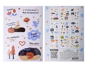 Набор состоит из 9 листов наклеек, каждый лист состоит из различных наклеек, которые имеют разный размер и форму. Их легко использовать, они уже вырезаны и готовы к нанесению на любую гладкую и ровную поверхность. Можно использовать в скрапбукинге, для составления различных композиций, а так же выделить важные элементы в ваших конспектах. Количество наклеек в наборе: 98