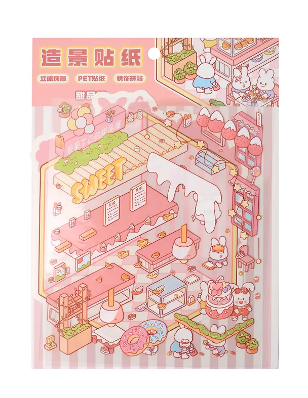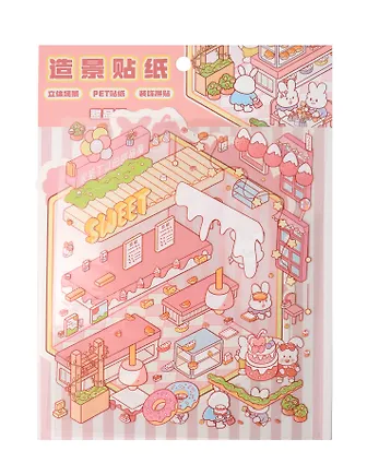 Наклейки-румбокс д/создания миниатюрных сцен, 150х125 мм, арт. 72279 / 300 КОНДИТЕРСКАЯ (комплектность: наклейки (2 л.), поле для наклеивания (1 л.); размер листа: 125х150 мм; материал наклеек: ПЭТ; кол-во наклеек: 60+; цвет: розовый; декор: полноцветная печать.