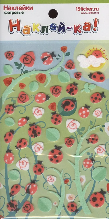 Наклейка декоративная фетровая 1 Божьи коровки 1 (95*185) (Наклей-ка) (3+) (упаковка)