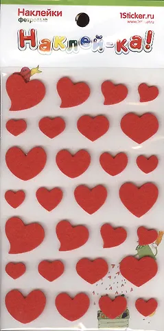 Наклейка декоративная фетровая 1 Сердца 1 (95*185) (Наклей-ка) (3+) (упаковка)