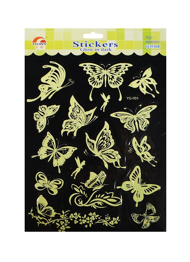 Наклейка фосфорная Цветочки/Бабочки МИКС (1022963) (29х21см) (упаковка)