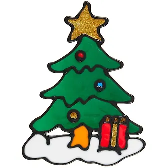 Очень нравятся такие многоразовые наклейки. Ёлочка очень нарядная. Звездочка на верхушке, ленточка на подарочной коробке под ней и жёлтый шарик украшены блестками и красиво переливаются. Наклейка двухсторонняя. Отлично подходит для декора к Новогоднему празднику. Можно использовать повторно.