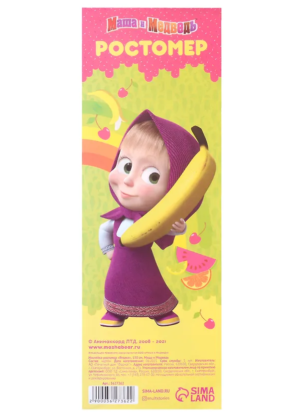 Ростомер "Ягодка", Маша и Медведь, 150 см.
