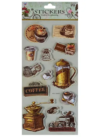 3D наклейки «Кофе» помогут быстро добавить уютное кофейное настроение в ежедневник, скетчбук, открытку или упаковку подарка. Объёмные элементы выглядят выразительно и приятно выделяются на поверхности, поэтому декор смотрится аккуратно даже без дополнительных материалов. Наклейки удобно использовать для скрапбукинга, оформления заметок и планов, а также для украшения чехла или папки. Подходят детям от 6 лет и взрослым.