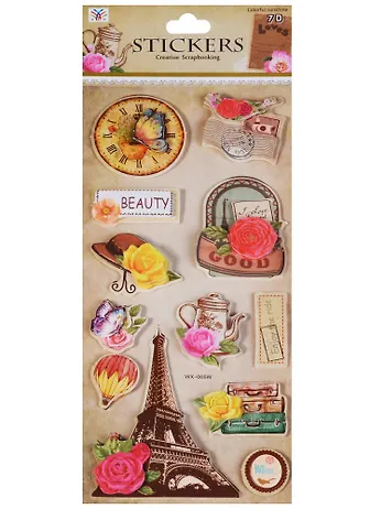 Есть что-то воздушное в этом небольшом наборе наклеек! Вероятно, дело в изображениях бабочек и воздушных шаров. Ещё есть цветочная тема с розами, нашлось место и красивой посуде (заварочный чайник). В целом стикерпак по мотивам романтических представлений о Париже, с таким винтажным оттенком.