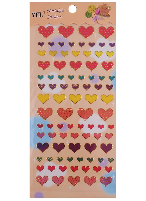 Наклейки бумажные с тиснением сердца и цветы