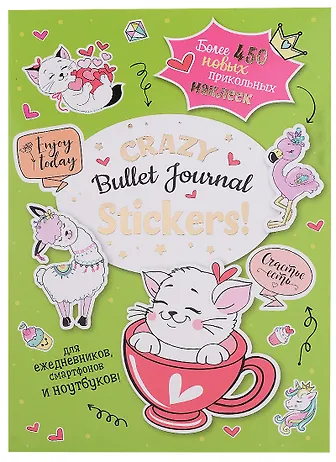 Коллекция ярких стикеров — это идеальное решение для творческих людей. Забавные котики и собачки, радужные единороги, фламинго, ленивцы, ламы и другие всеми любимые персонажи украсят ваш bullet journal, простой ежедневник, записную книжку или блокнот, создав лёгкое и игривое настроение. Помимо очаровательных зверушек, в этом сборнике вы найдёте наклейки с забавными и мотивирующими фразами на русском и английском языках, а также стикеры с элементами оформления в стиле bullet journal,