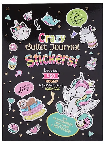 Коллекция ярких стикеров — это идеальное решение для творческих людей. Забавные котики и собачки, радужные единороги, фламинго, ленивцы, ламы и другие всеми любимые персонажи украсят ваш bullet journal, простой ежедневник, записную книжку или блокнот, создав лёгкое и игривое настроение. Помимо очаровательных зверушек, в этом сборнике вы найдёте наклейки с забавными и мотивирующими фразами на русском и английском языках, а также стикеры с элементами оформления в стиле bullet journal,