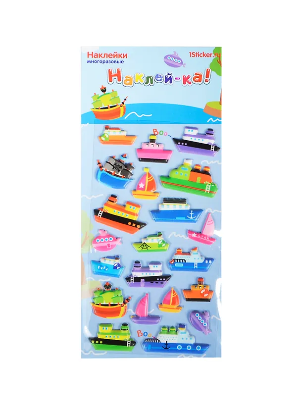 Наклейки декоративные, многоразовые, зефирные 4 Корабли 1 8*15см
