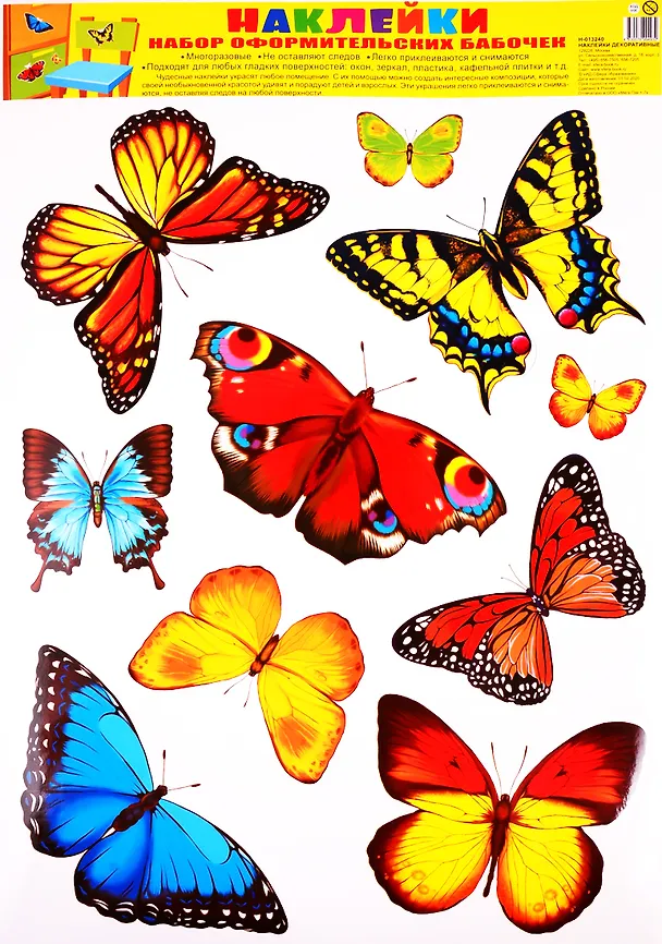 Наклейки декоративные. Набор оформительских бабочек