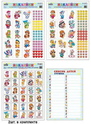 Наклейки для шкафчиков,кроваток,стульчиков и поощрения(для детей от 3 лет). В комплекте 4 листа А3
