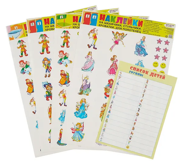 Наклейки для шкафчиков,кроваток,стульчиков и поощрения(для детей подготовительной группы). В комплек