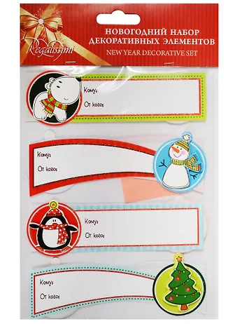 Новогодний набор декоративных 3D тэгов (самоклеящихся ярлычков для подписи подарков), для украшения подарочной упаковки, 8 шт в наборе; (ручная работа); эффект: глиттерное лакирование; в пакете с европодвесом; Размер 16 х 25,7 см, NY16-3DTAG-GLIT1